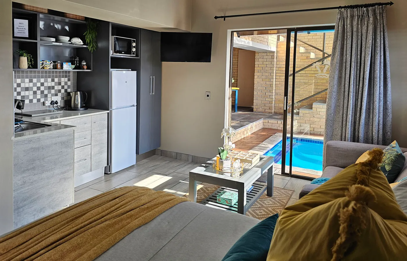 Step into your private haven adjoining the sparkling pool area, where every moment is drenched in sun-kissed relaxation and tranquil leisure.